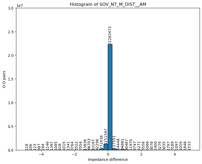 Summary of Comparison on SOV_NT_M_DIST__AM between EMME OpenPath and EMME437