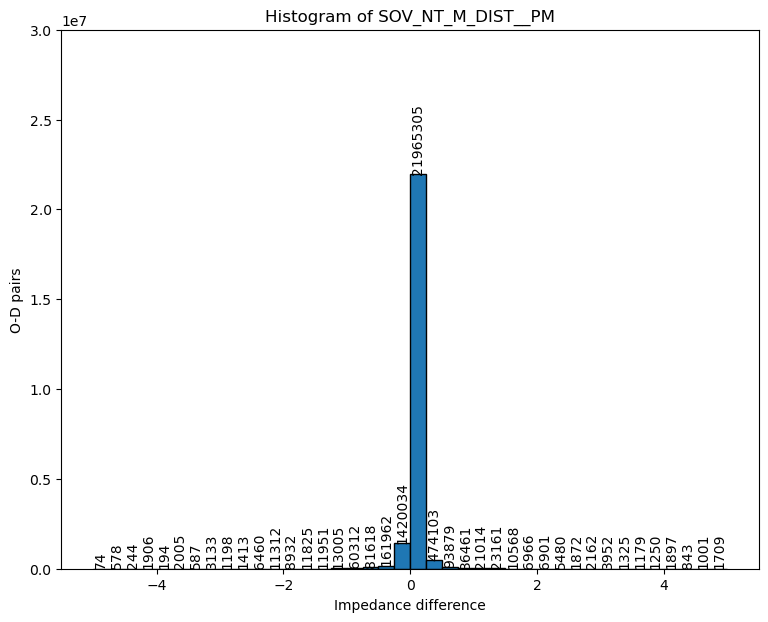 Summary of Comparison on SOV_NT_M_DIST__PM between EMME OpenPath and EMME437