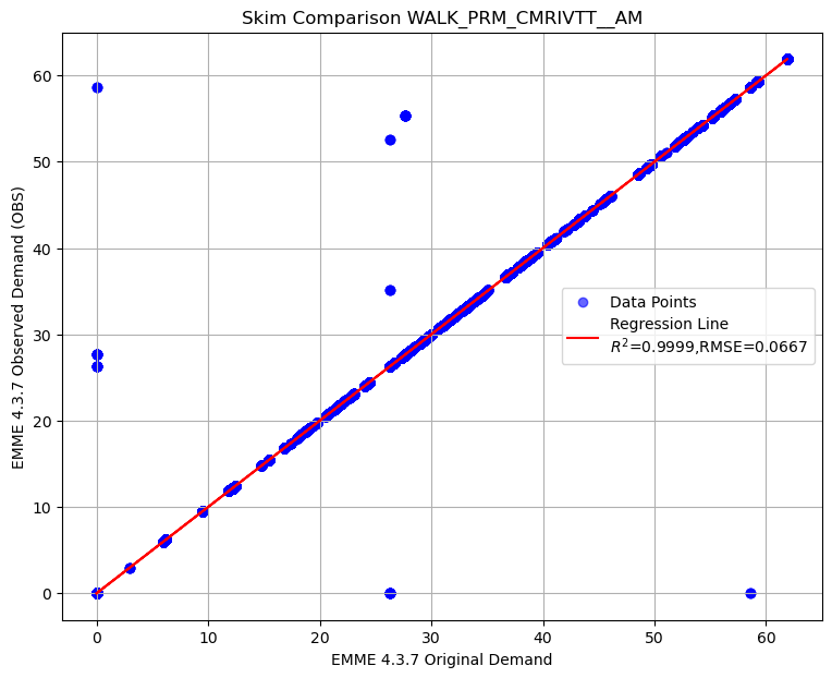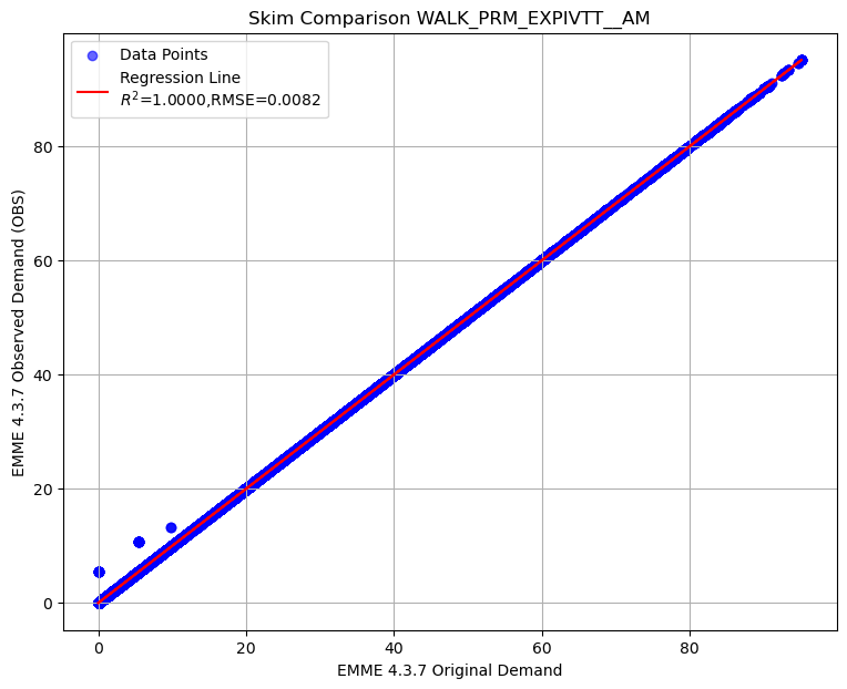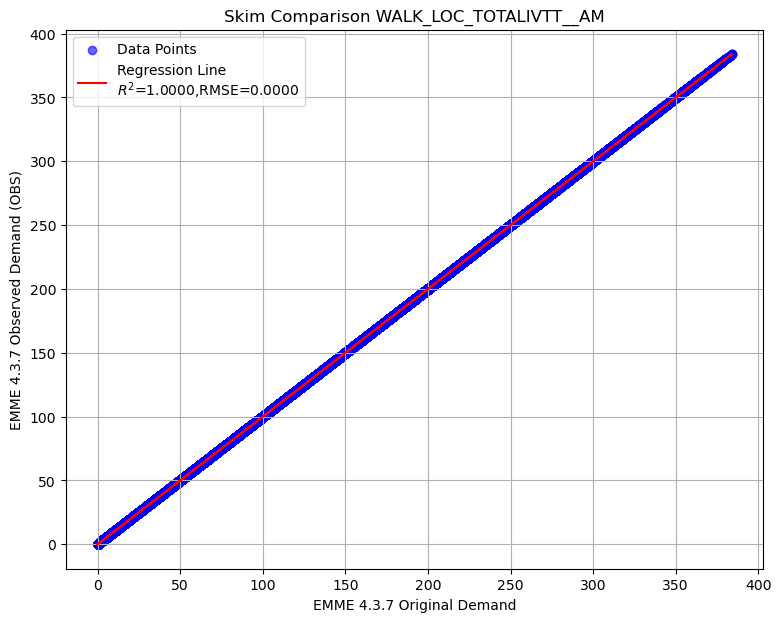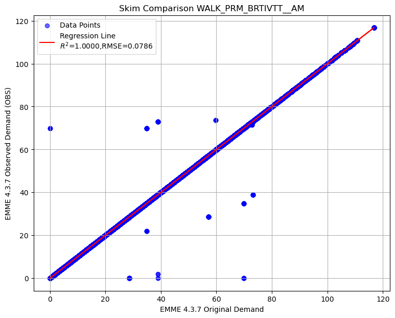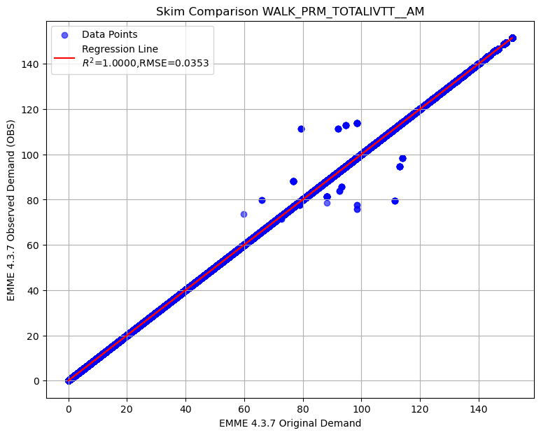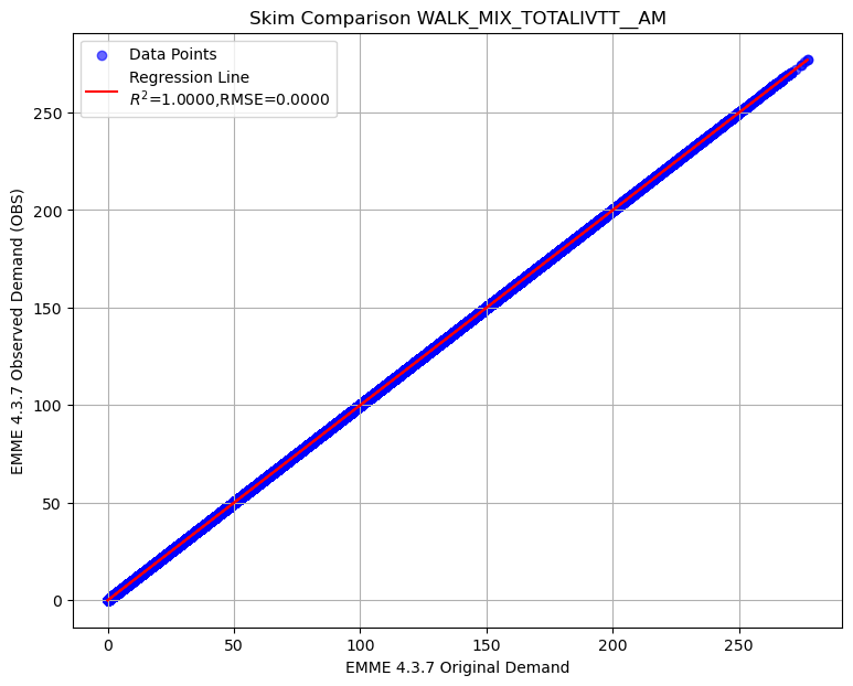 Summary of transit AM skim comparison (EMME 4.3.7 Observed Demand - EMME 4.3.7 Original Demand)